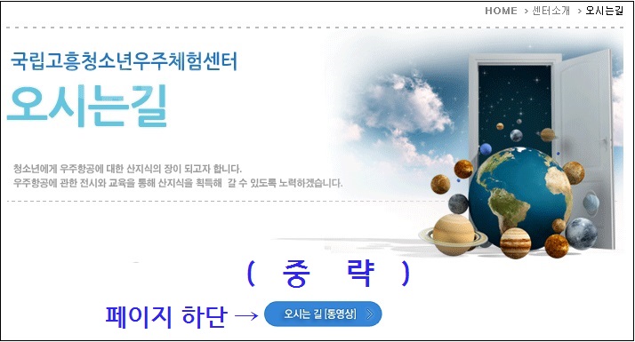 1. ¼¾ÅͼҰ³>¿À½Ã´Â ±æ: ÆäÀÌÁö ÇÏ´ÜÀÇ '¿À½Ã´Â±æ(µ¿¿µ»ó)'À» Ŭ¸¯Çϸé,